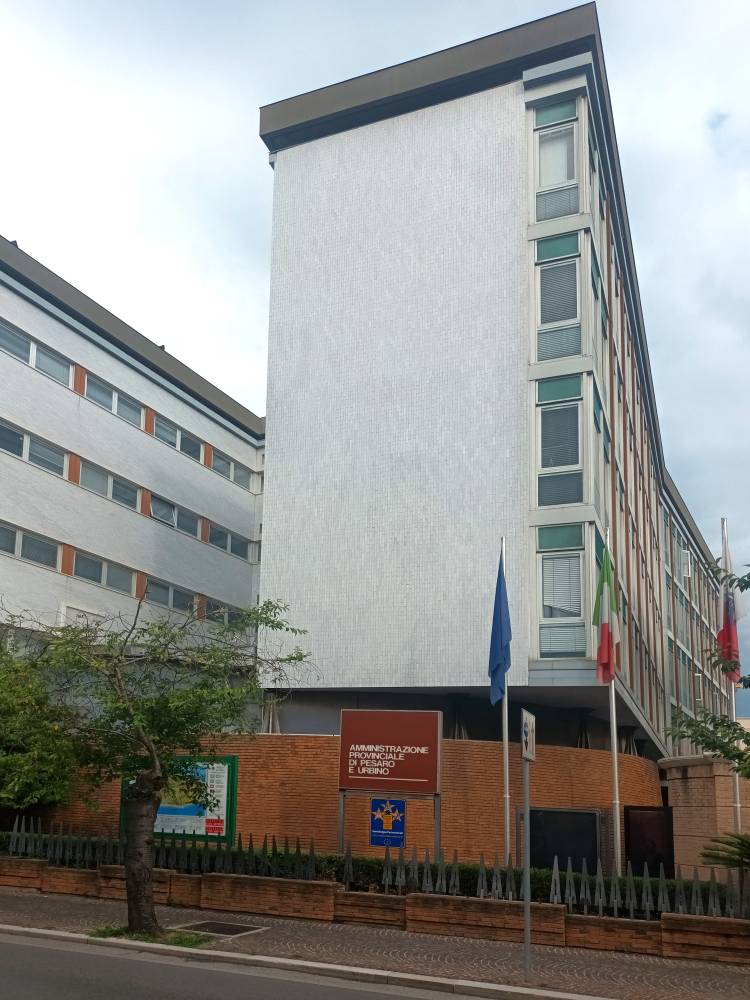 Contribuisce a rendere pregevole l’edificio la realizzazione della Sala del Consiglio Provinciale, intitolata a Wolframo Pierangeli primo presidente, che è stata progettata dall’architetto pesarese Celio Francioni (Pennabilli 1928 – Pesaro 2002).